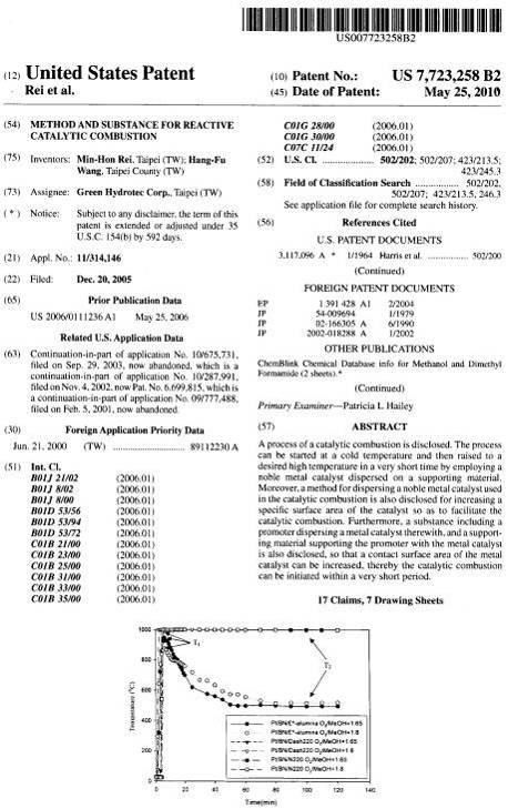 | 7 | Method and substance for reactive catalytic combustion | CN | ZL 200410032262.2(2009-05-13) |
