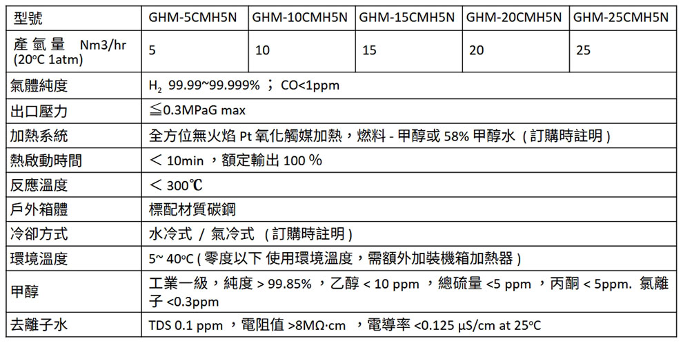 根據使用者的不同需求,產品氫氣的純度可以在99vol%~99.999vol%之間,標準氫氣出口壓力為0.1MPaG至0.3MPaG。