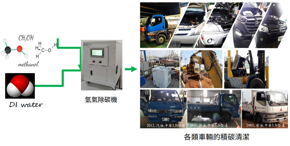 氫合成氣可稍微提高引擎燃燒溫度,在適當進氣量下進行為燃燒、分解和消除積碳。積碳形成更容易燃燒的碳氫化合物,有助於去除引擎室內的積碳。